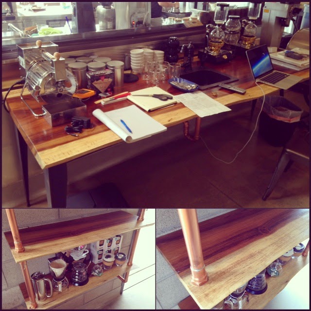 Parota table and shelves at Lofty Coffee in Encinitas, CA