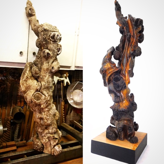 Before and After: Fig log sculpture by Bob Rosenfield!